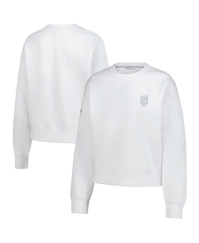 Levelwear Women's White Uswnt Luxe Sponge Tri-Blend Pullover Sweatshirt