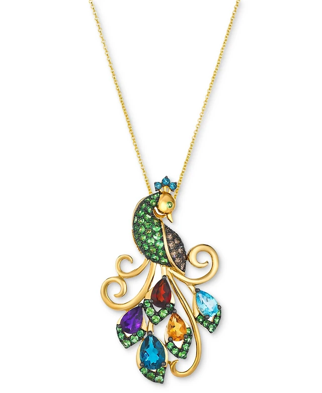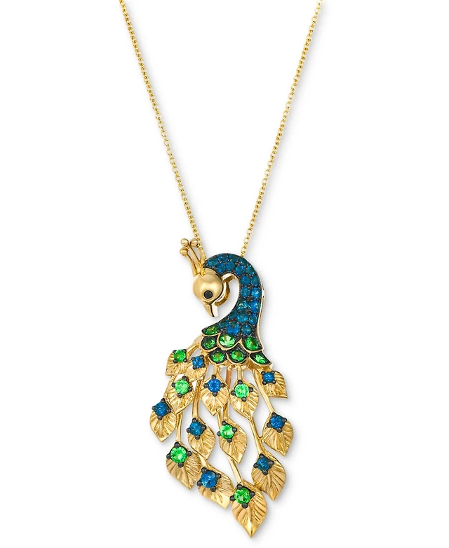 Le Vian Green Apple Peridot (1-1/8 ct. t.w.) & Diamond (1/5 ct. t.w.) Trillion Halo Adjustable 20" Pendant Necklace in 14k Gold