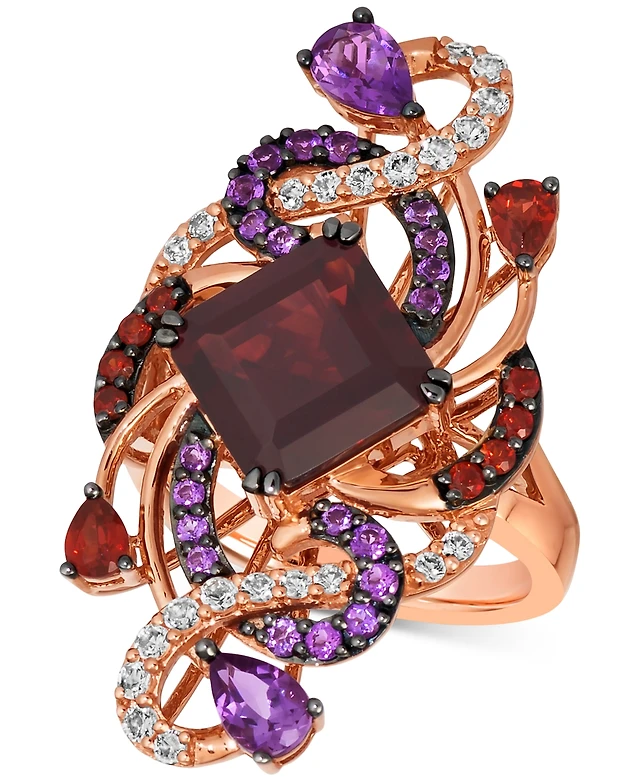 Le Vian Raspberry Rhodolite (1-3/4 ct. t.w.) & Diamond (7/8 ct. t.w.) Swirl Ring in 14k Rose Gold