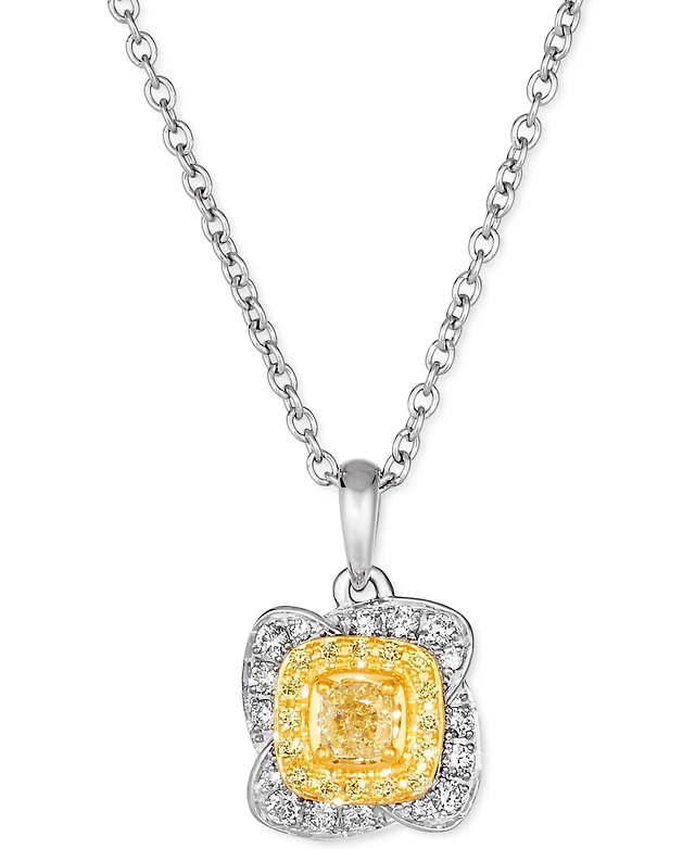 Le Vian Sunny Yellow Diamond (1/4 ct. t.w.) & Vanilla Diamond (1/6 ct. t.w.) Double Halo 18" Pendant Necklace in Platinum & 14k Gold