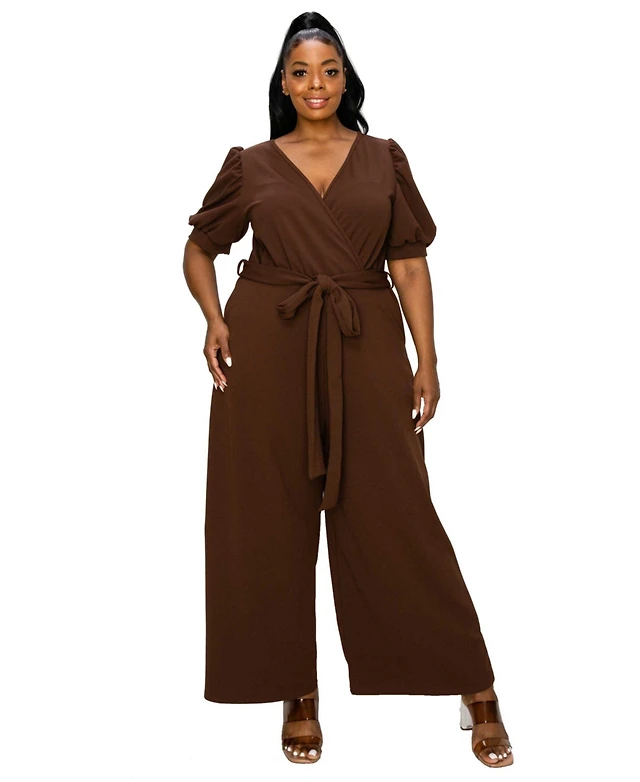 L I V D Plus Iris Surplice Belted Pocket Jumpsuit