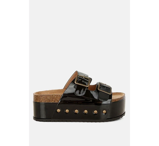 London Rag Zaphod Faux Leather Flatform Slip Ons Women