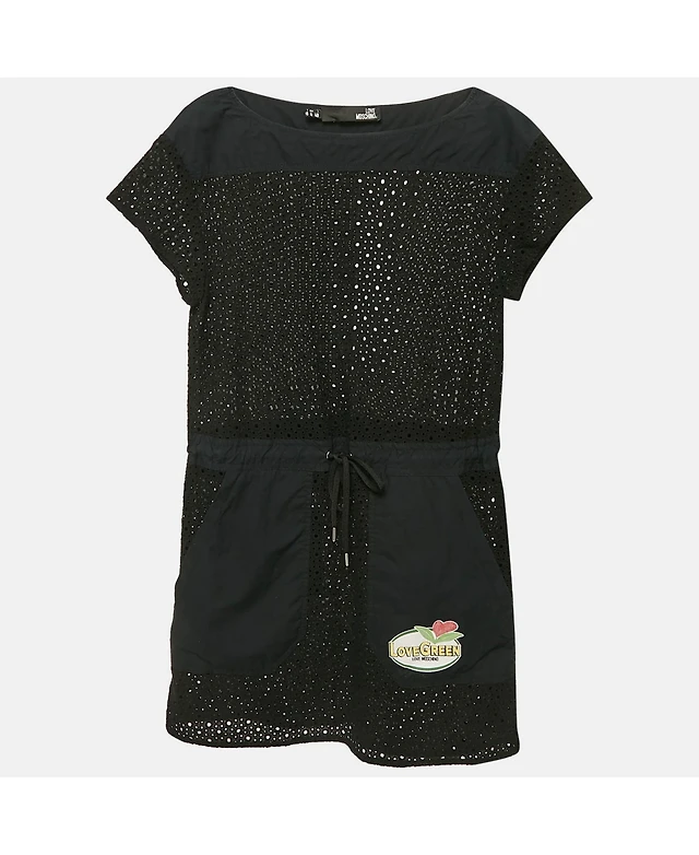 Pre-Owned Love Moschino Women's Black Broderie Anglaise Cotton Mini Dress