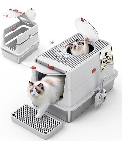 Ltmate Stainless Steel Litter Box with Lid,with Triple Pedal, Non-Sticky