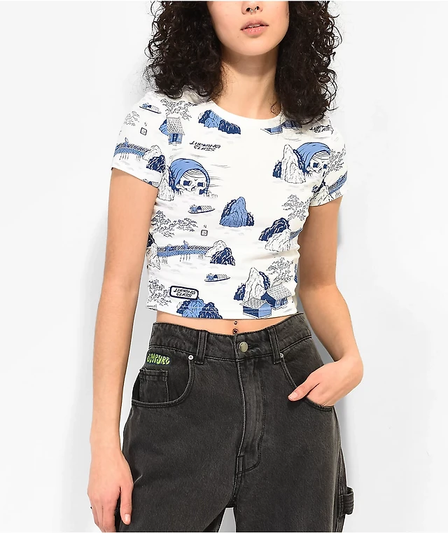 Lurking Class by Sketchy Tank Burnout Ringer White Crop T-Shirt