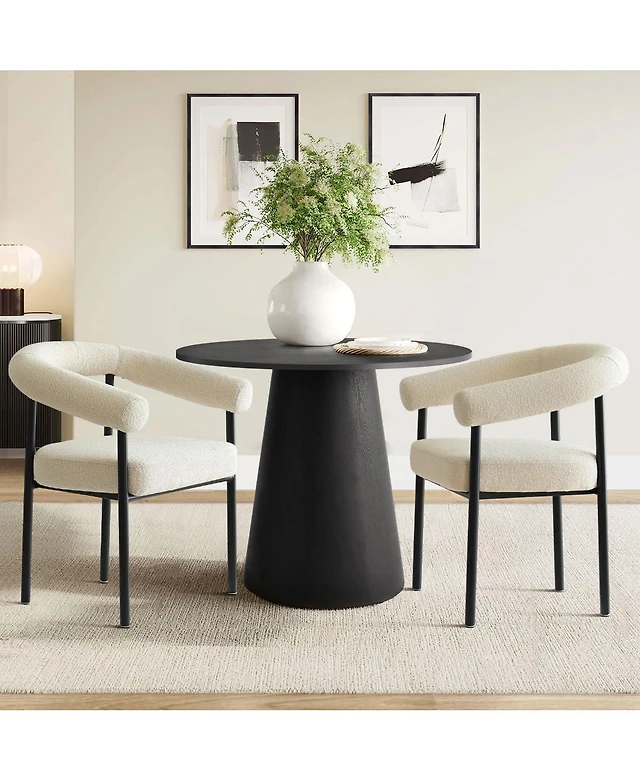 Maison Boucle Compact 35 Inch Round Dining Table Set with 2 Armrest Dining Chairs, Space-Saving Furniture for Modern Kitchen Nook-Maison Boucle