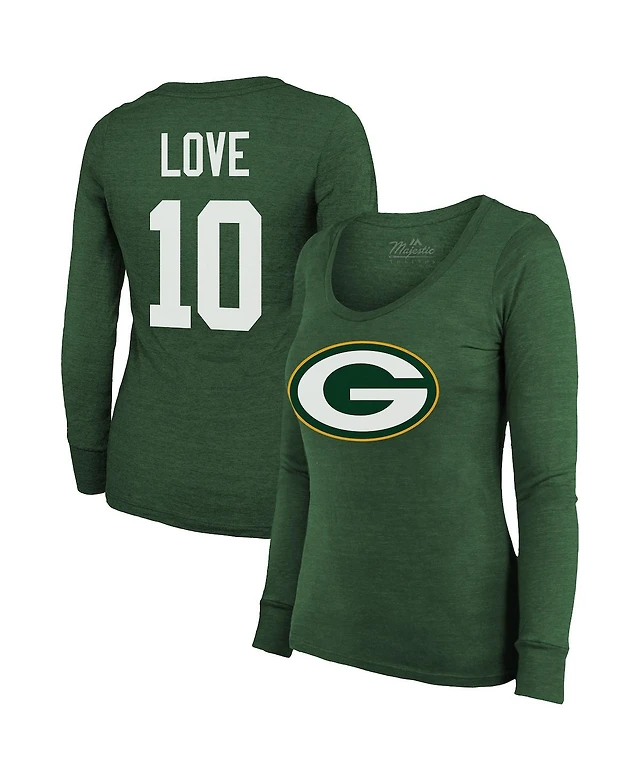 Majestic Women's Jordan Love Green Green Bay Packers Name Number Long Sleeve T-Shirt
