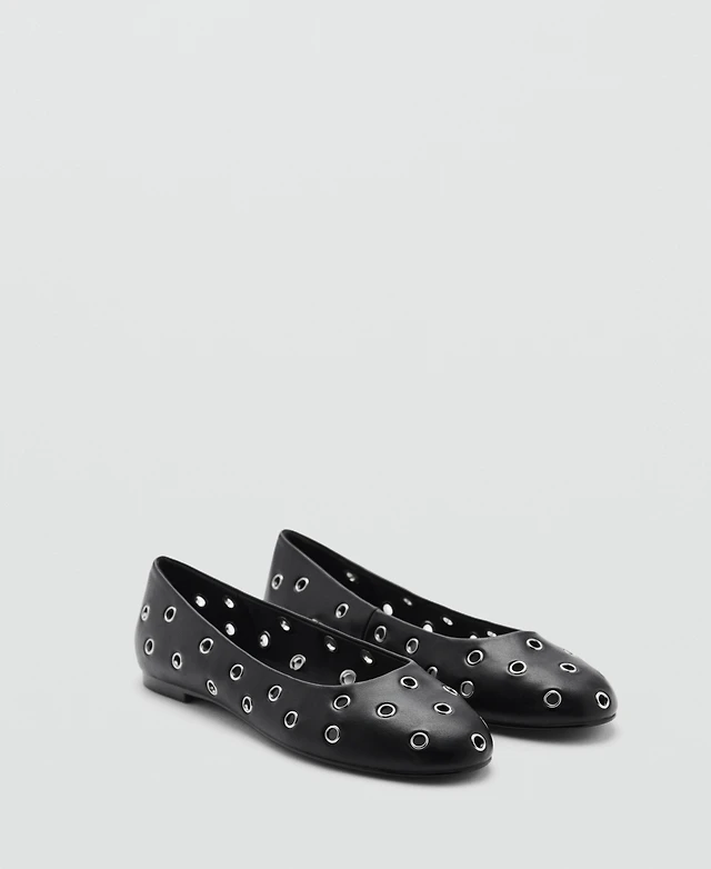 Mango Women's Strap and Buckle Detail Mesh Ballet Flats