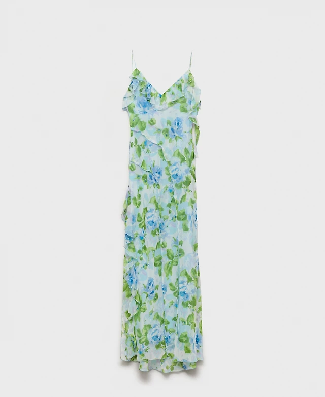 Mango Women's Crossed Neckline Long Semi-Transparent Dress