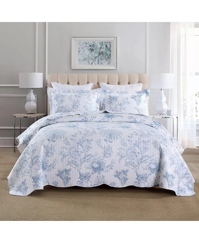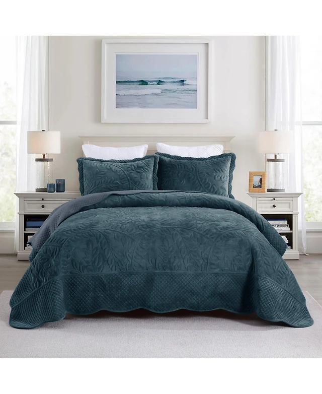 MarCielo 3 Piece Quilted Embroidery Quilts Bedspreads Set Emma