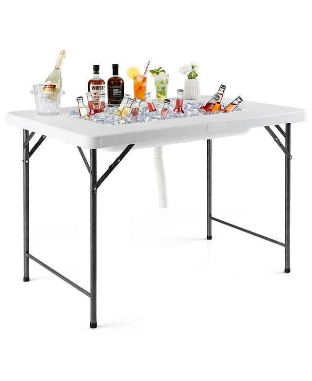 3-in-1 Portable Cooler Bar Table with Bottle Opener and Lift Top Lid for Camping Poolside