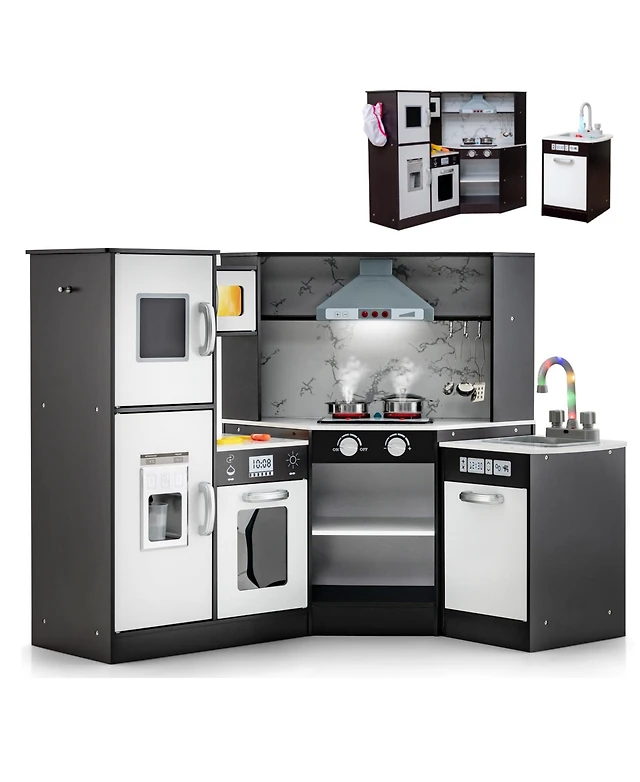 Wooden Corner Play Kitchen with Water Circulation System and Lights