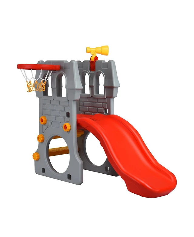 4-in-1 Heavy-Duty Metal Playset with Slide and Basketball Hoop