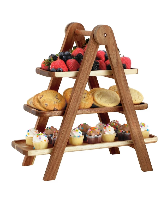 MegaChef Acacia Wood 3 Tiered Rectangular Ladder Tray Set