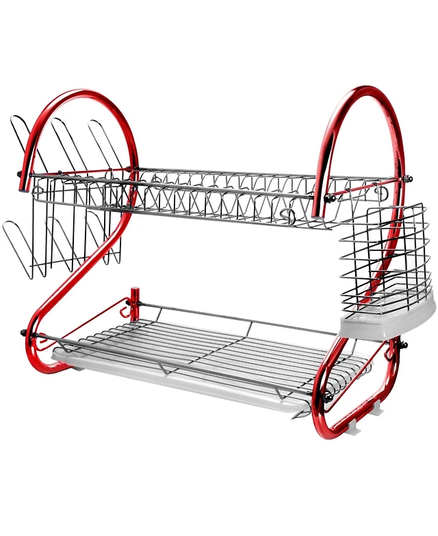 MegaChef 17 Inch Red and Silver Dish Rack with Detachable Utensil holder and a 6 Attachable Plate Positioner