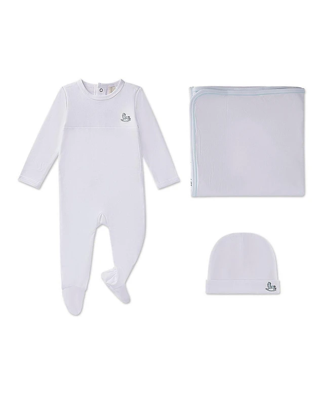 MeMoi Baby Boys 3 Piece 100% Pima Footie Set with Peter Pan Collar and Teddy Bear Embroidery