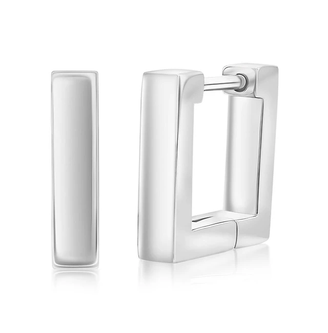 Metallo Stainless Steel, Gold Plated or Black Pated Over Steel 12mm Square Huggie Earrings