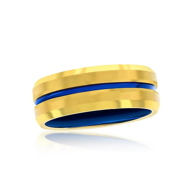 Metallo Gold & Blue Stripe Tungsten Ring - Matte Polished
