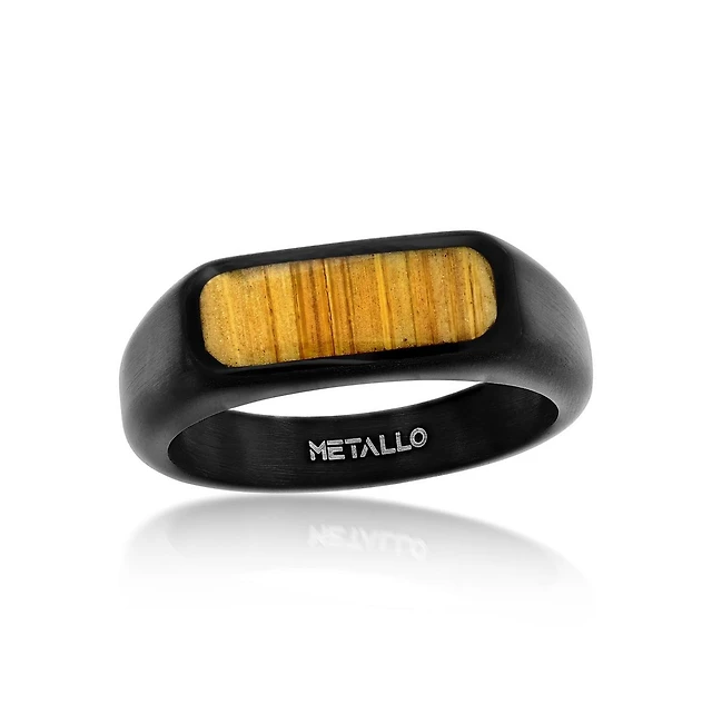 Metallo Stainless Steel Black Plated, Rectangle Wood Inlay Ring