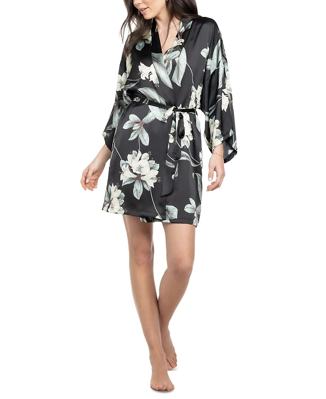 Midnight Bakery Women's Cosmica Satin Floral Wrap Robe