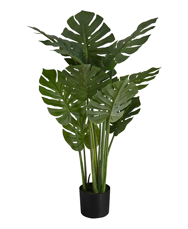 Monarch Specialties 45" Indoor Artificial Floor Monstera Tree with Black Pot