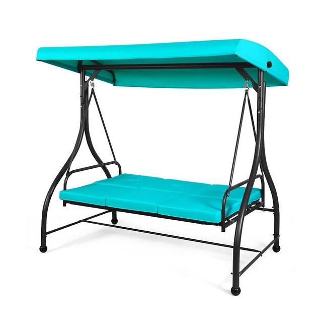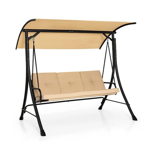 3-Seat Outdoor Porch Canopy Swing with Adjustable Shading