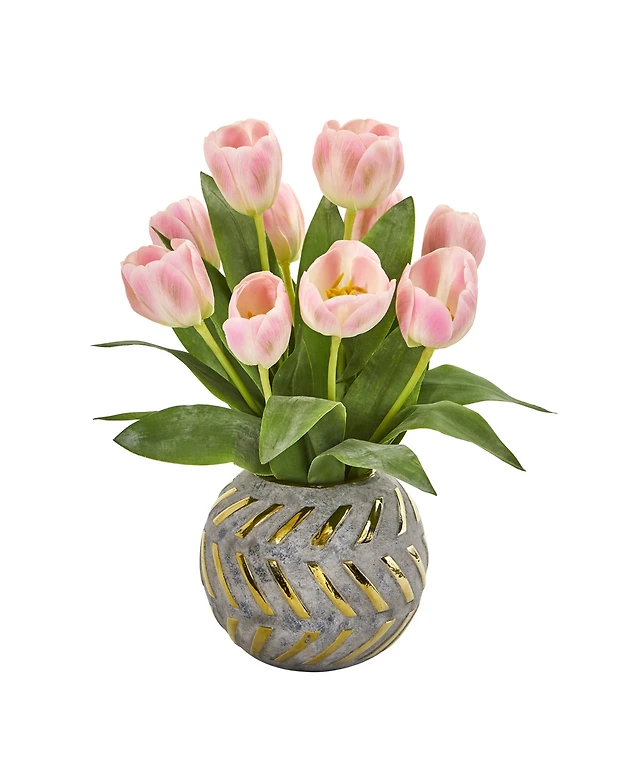 Nearly Natural Tulip Artificial Arrangement Decorative Vase
