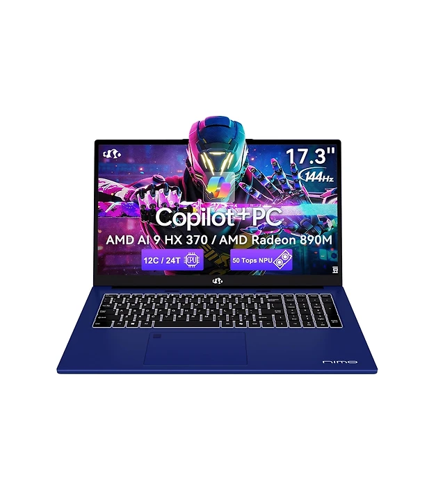 Nimo 17.3" Ai Laptop, Amd Ryzen 9 Hx 370(50 Tops Npu), Radeon 890M, 64GB Ram 1TB Ssd, DDR5, 144Hz, Pd 100W Usb-c 4.0