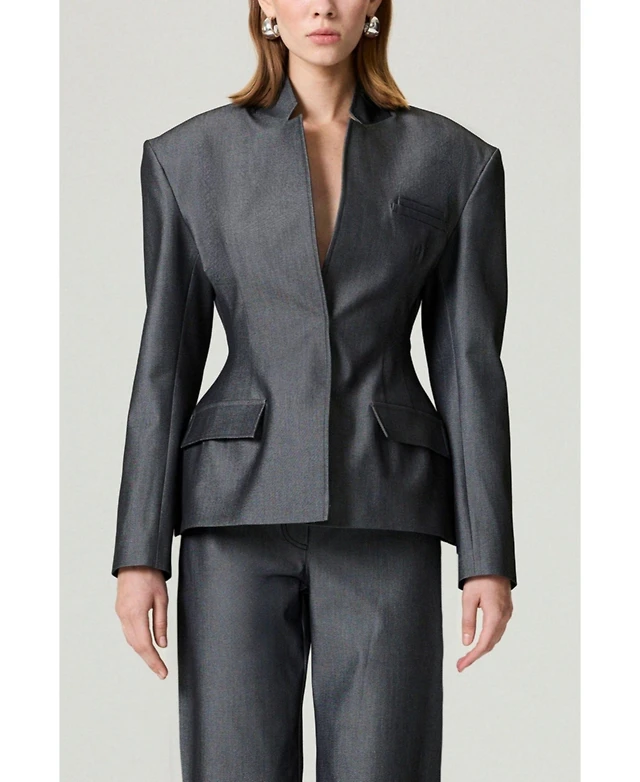 Nocturne Women's Checked Portrait Collar Double-Breasted Jacket