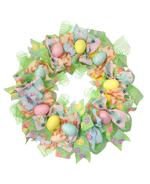 Colorful Deco Mesh Ribbon Easter Bunny Wreath 24" Unlit