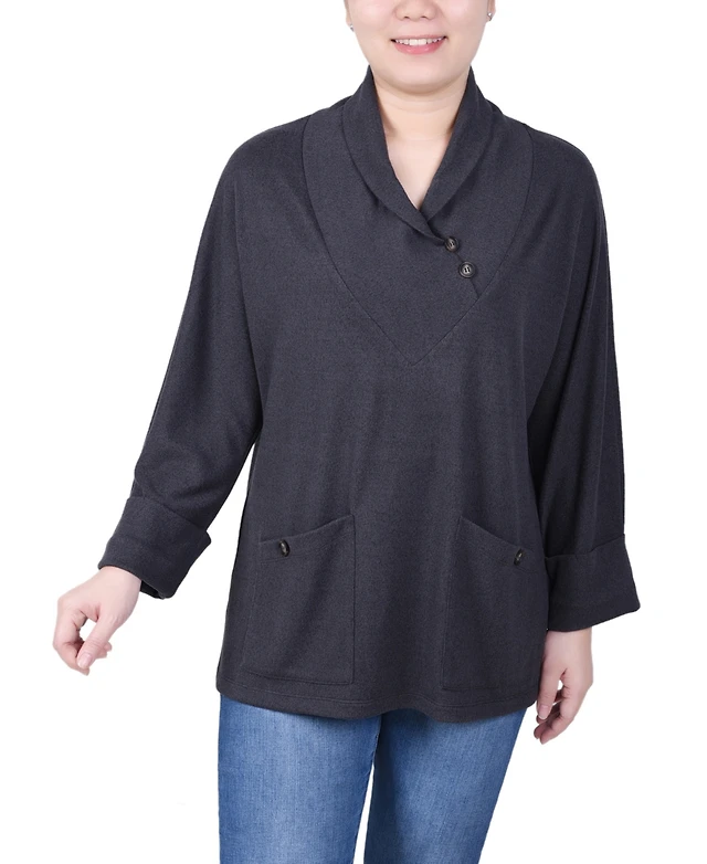 Ny Collection Plus Long Sleeve Textured Knit Top