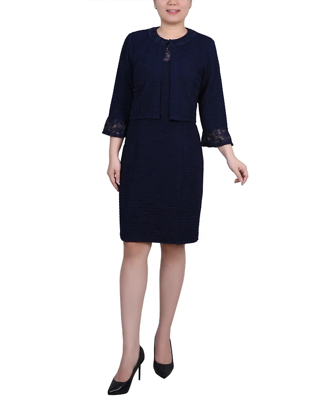 Ny Collection Petite Short Sleeve Midi Slubbed Dress