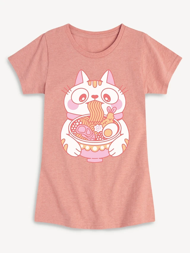 Ramen Cat Fitted Short Sleeve T-Shirt For Girls