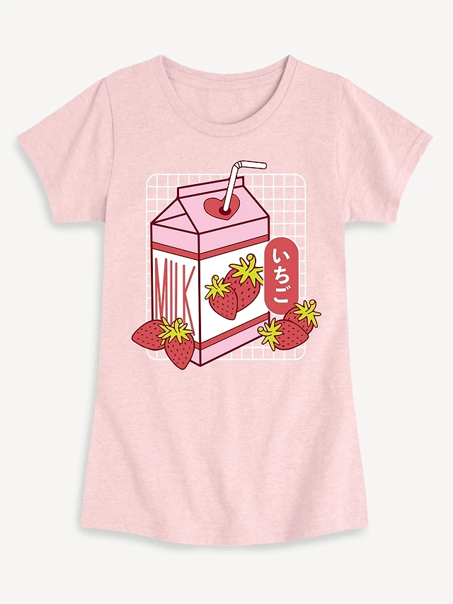 Kawaii Strawberry Milk Fitted Short Sleeve T-Shirt For Girls