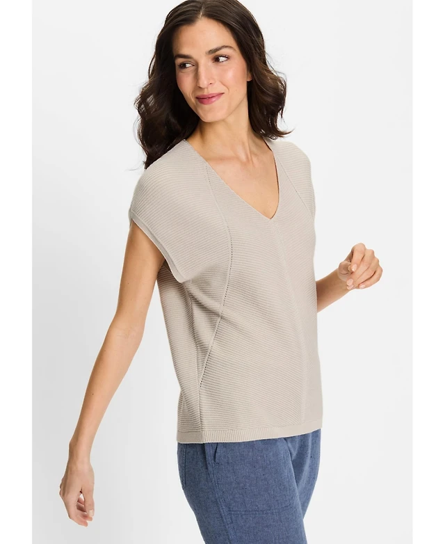 Olsen Women's Solid V-Neck Short Sleeve Blouse