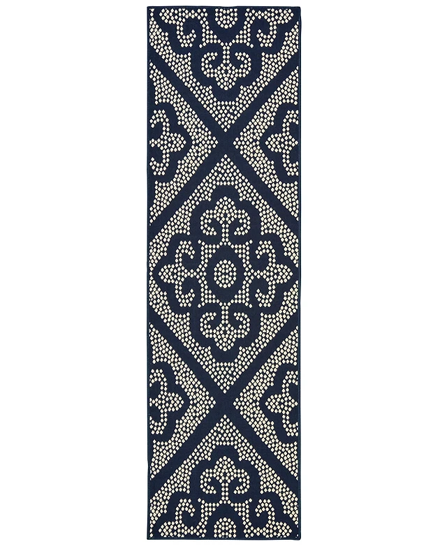 Oriental Weavers Marina 3804B Navy/Ivory 2'3" x 7'6" Indoor/Outdoor Runner Area Rug