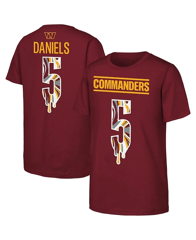 Outerstuff Big Boys and Girls Jayden Daniels Burgundy Washington Commanders Mainliner Drip Player Name Number T-Shirt