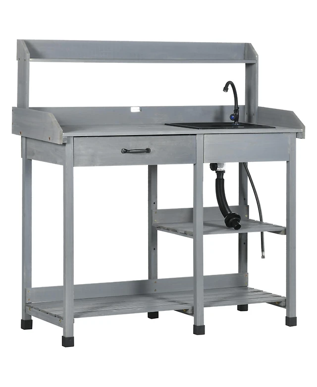 Outsunny Potting Bench Prep Table with Faucet, and Storage,