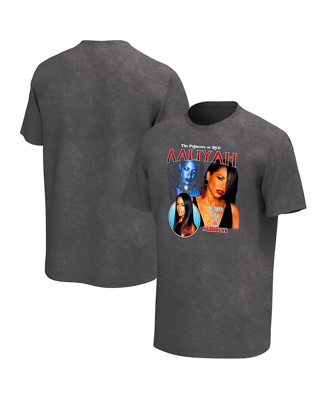 Men's Black Distressed Aaliyah Collage Washed Graphic T-shirt