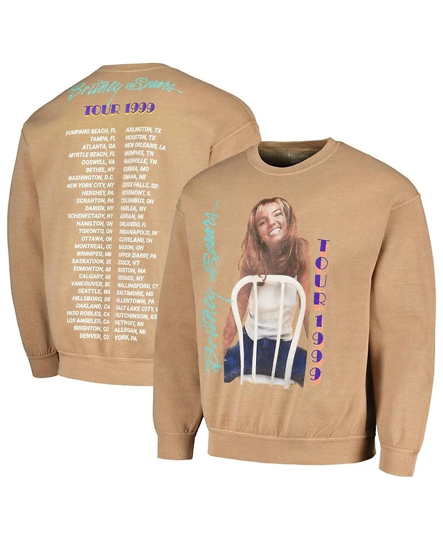 Men's Tan Distressed Britney Spears Tour Washed Pullover Sweatshirt