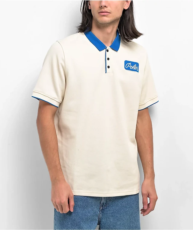 Poler Hortons Cream & Blue Polo Shirt