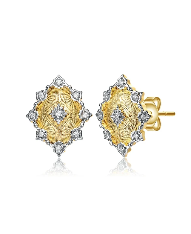 White Gold and 14K Gold Plated Sunny Array Cubic Zirconia Drop Earrings