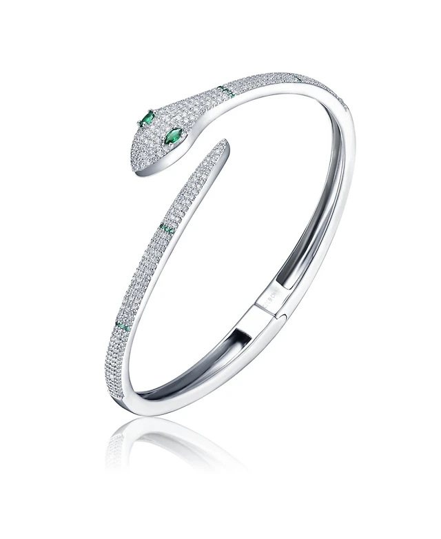 Rachel Glauber 14k Gold Plated Sterling Silver Jaguar Open Cuff Bangle Bracelet with Green Cubic Zirconia