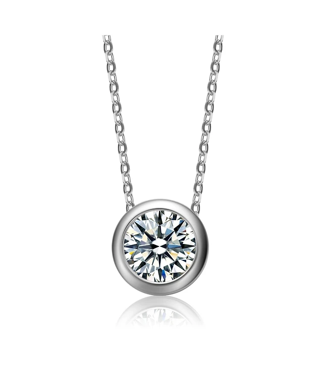 Rachel Glauber White Gold Plated Clear Round Cubic Zirconia Bezel Set Necklace