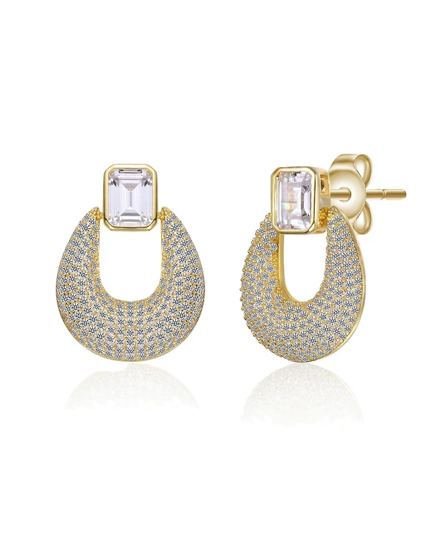 14K Gold Plated Openwork U-Shaped Oblong Hoop Earrings