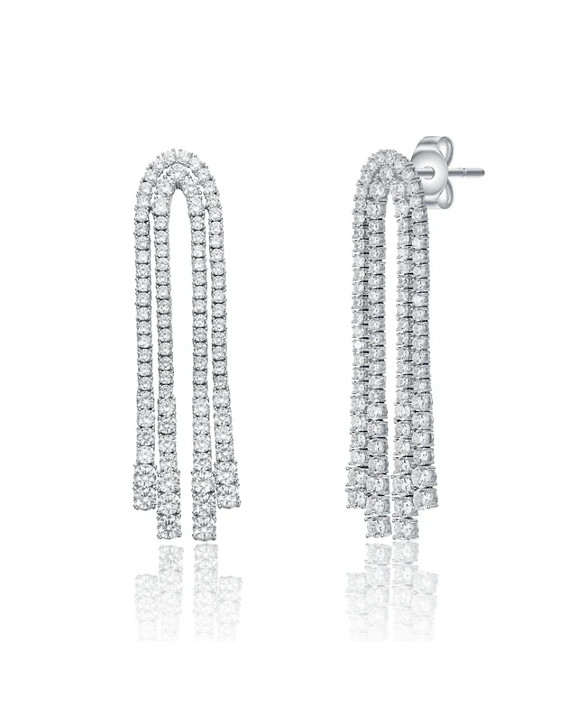 White Gold Plated Cubic Zirconia Linear Waterfall Fringe Dangle Earrings