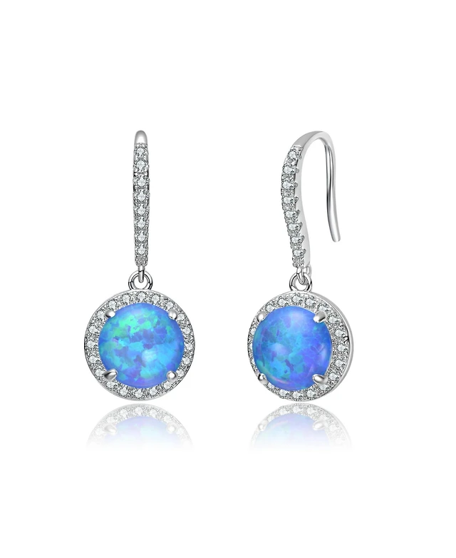 White Gold Plated with Colored Cubic Zirconia Drop Hook Earrings