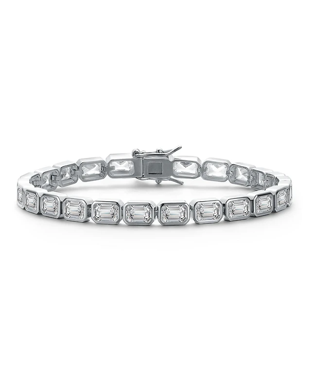 Rachel Glauber White Gold Plated with Clear Cubic Zirconias Tennis Bracelet
