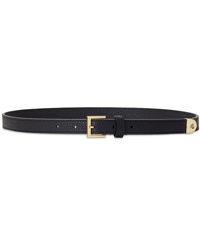 Lauren Ralph Leather Slide-Buckle Croc-Embossed Belt
