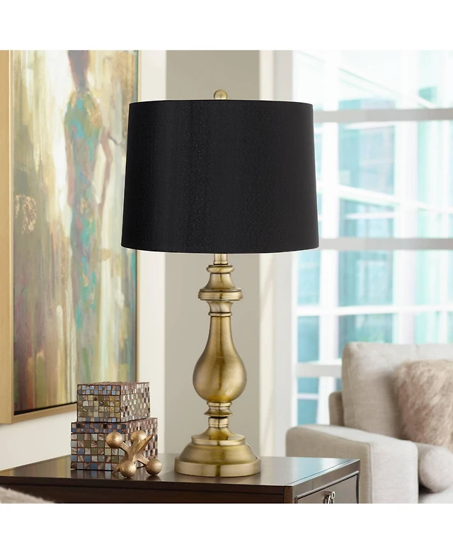 Regency Hill Fairlee Traditional Table Lamp 26" High Antique Brass Candlestick Black Fabric Drum Shade for Bedroom Living Room Bedside Nightstand